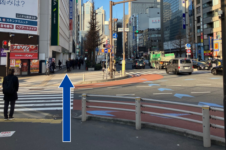 西新宿1丁目の交差点を直進